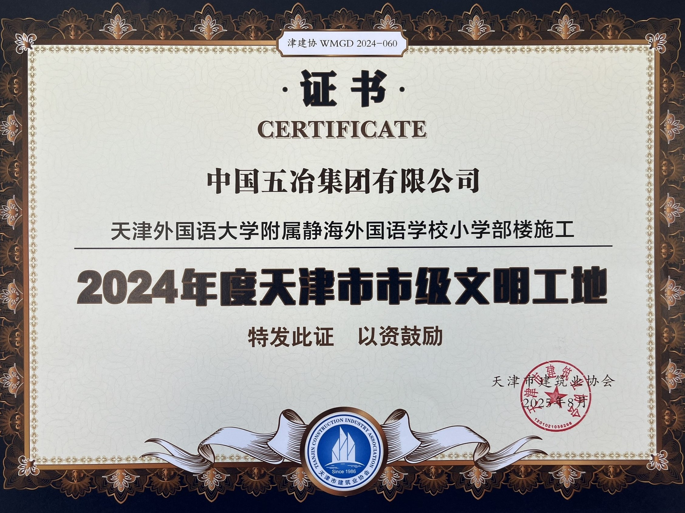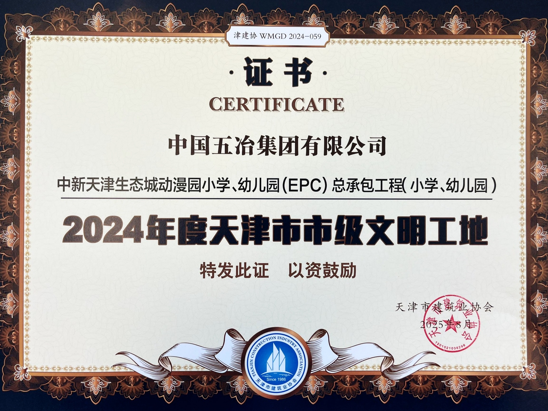 近日,中国五冶集团华北公司承建的天津绿城水西云庐项目、天津中新生态城动漫园小学项目、天津外国语大学附属静海外国语学校项目分别荣获"2024年度天津市市级文明工地"称号。